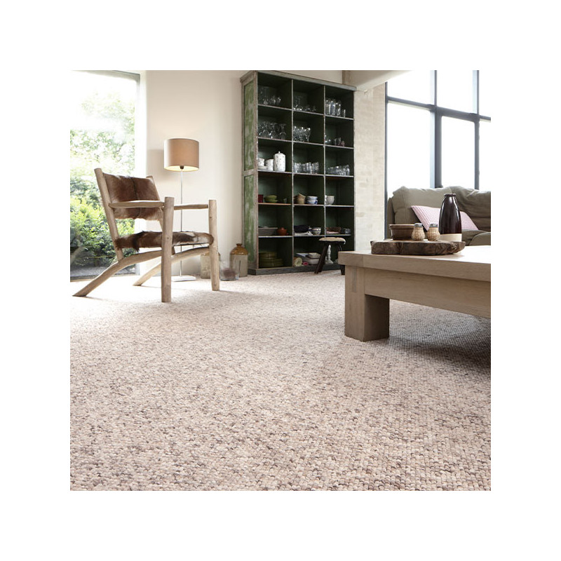 La moquette bouclée neige 4 m offre un style berbère et naturel qui apportera une touche zen et apaisante à votre pièce. Sa grosse boucle et sa hauteur de boucle généreuse combinées à un support en feutre assurent un excellent confort de marche. Ce revêtement de sol est non seulement agréable sous les pieds, mais il offre également une isolation thermique et phonique, créant une atmosphère chaleureuse et silencieuse dans votre intérieur.
