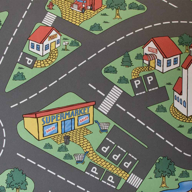 Sol pvc en rouleau circuit voiture enfant largeur 2m ep. 2.80 mm passage important