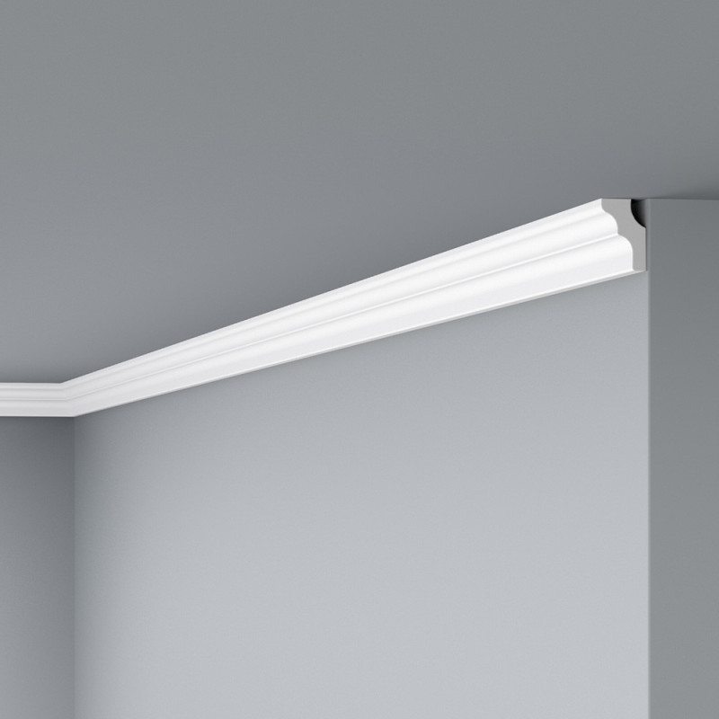 La moulure décorative en polystyrène de 25 mm x 17 mm x 2000 mm, connue sous le nom de corniche D2, se distingue par sa capacité à s'intégrer harmonieusement à tous les intérieurs et styles. Ses lignes audacieuses et ses courbes élégantes ajoutent une touche d'élégance sans pour autant alourdir la pièce. Cette corniche est idéale pour ceux qui recherchent à la fois la simplicité et le raffinement dans leur décoration intérieure. Elle permet de définir les espaces avec subtilité, créant ainsi un cadre esthétique qui complète et met en valeur l'ensemble de la pièce.
