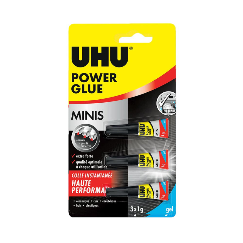 Lot de 3 colles UHU PowerGlue minis gel 3x1g