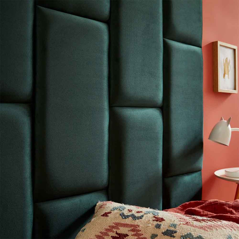 Panneau coussin mural velours vert sapin 30x60 cm
