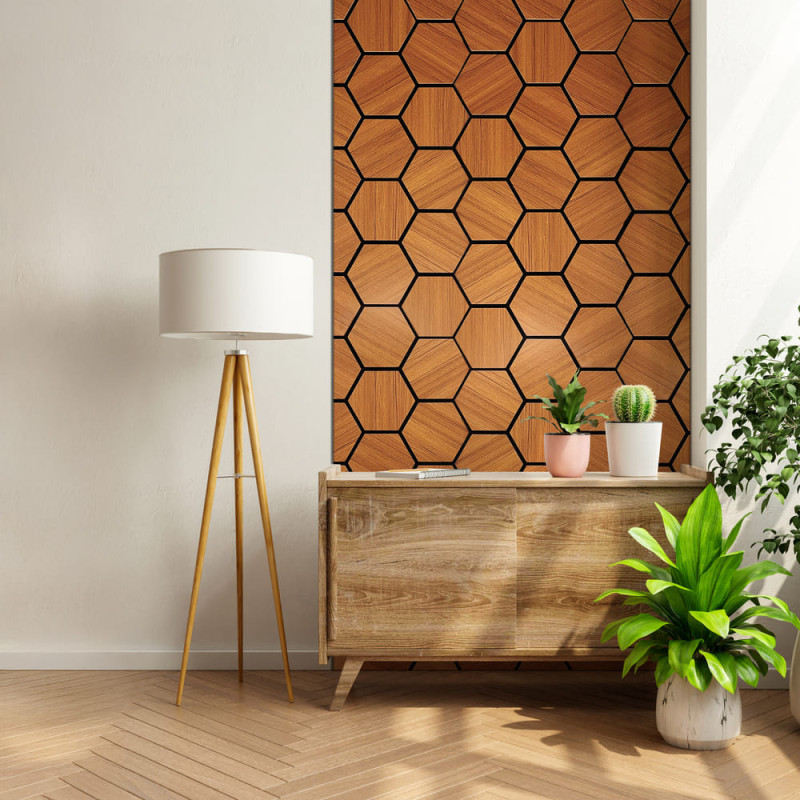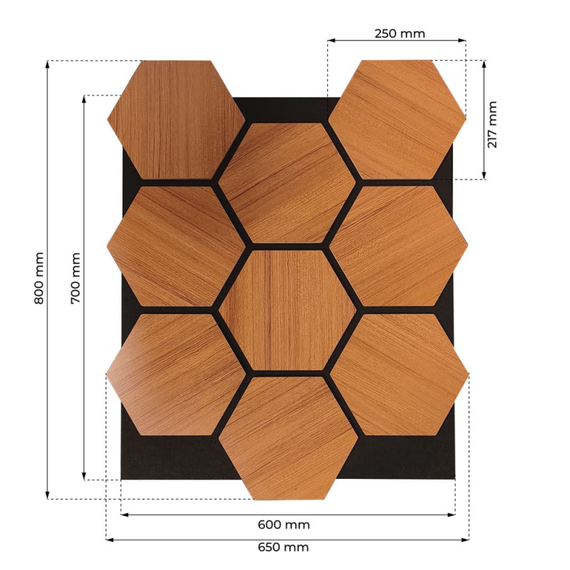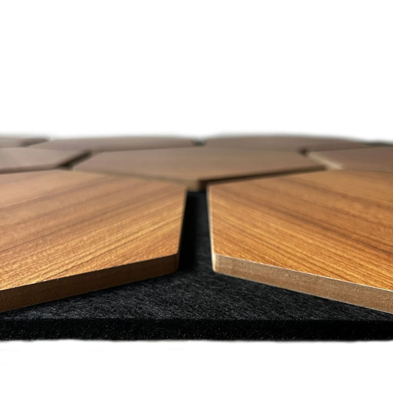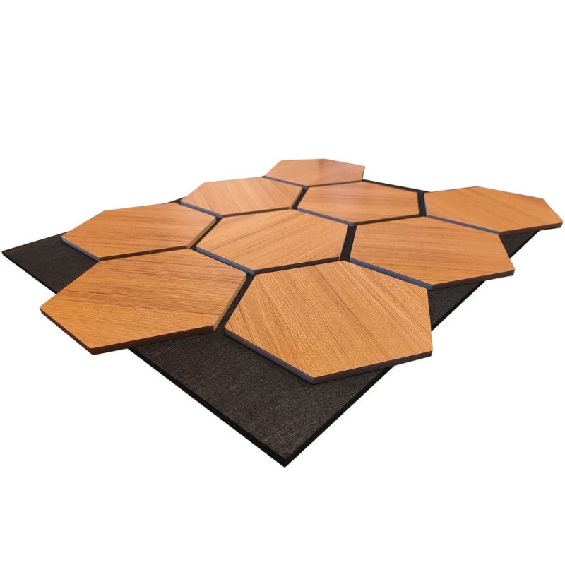 Panneau bois hexagonal chêne teck 65x80x9mm