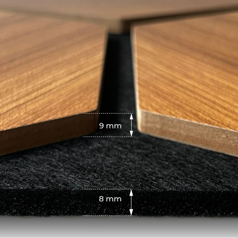 Apportez une touche élégante et chaleureuse à vos espaces avec ce panneau bois mural hexagonal en teck, au design nid d’abeille unique. Dimensions : 65x80 cm, épaisseur 9 mm, monté sur une feutrine noire (60x70 cm, épaisseur 8 mm). Les hexagones en MDF dépassent légèrement de la feutrine, créant un effet 3D moderne et raffiné. Ce panneau mural en teck est idéal pour habiller vos murs, créer des décors originaux ou personnaliser vos pièces. Pose facile et rapide : ajustable, il peut être collé ou agrafé selon vos préférences pour une décoration intérieure fonctionnelle et esthétique.