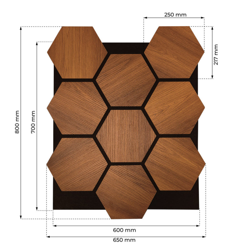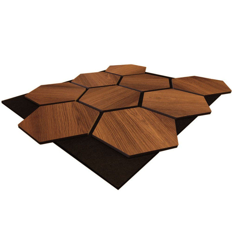 Panneau bois hexagonal chêne foncé 65x80x9mm