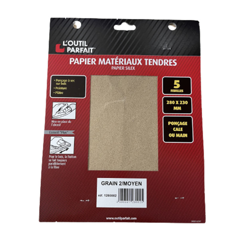 Lot de 5 feuilles de papier de verre grains moyens spécial matériaux tendres.