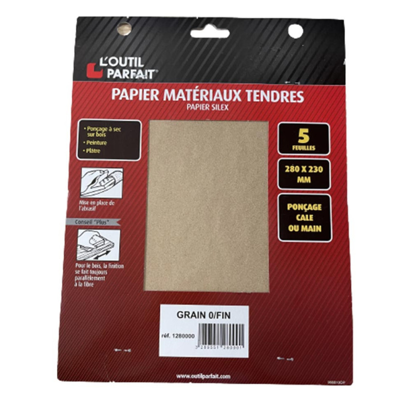 Lot de 5 feuilles de papier de verre grain 0 spécial matériaux tendres.