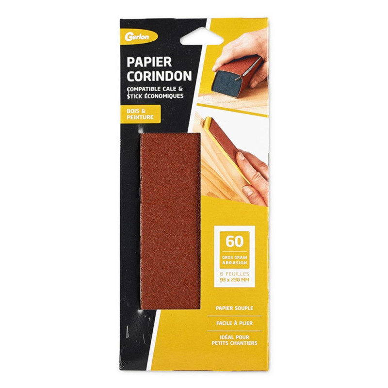 Découvrez notre set de 6 papiers corindon de dimensions 93 x 230 mm. Parfaits pour une variété de projets de ponçage, ces papiers offrent une abrasion efficace et uniforme. Leur taille pratique les rend idéaux pour une utilisation sur une gamme de surfaces. Obtenez des résultats impeccables et professionnels avec ce set polyvalent de papiers corindon, un indispensable pour votre atelier ou chantier.