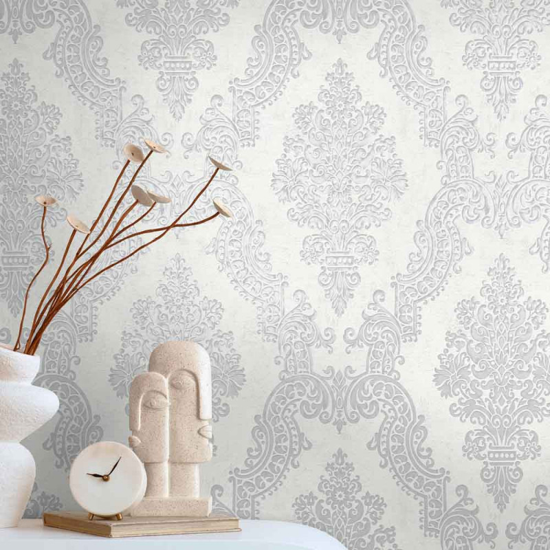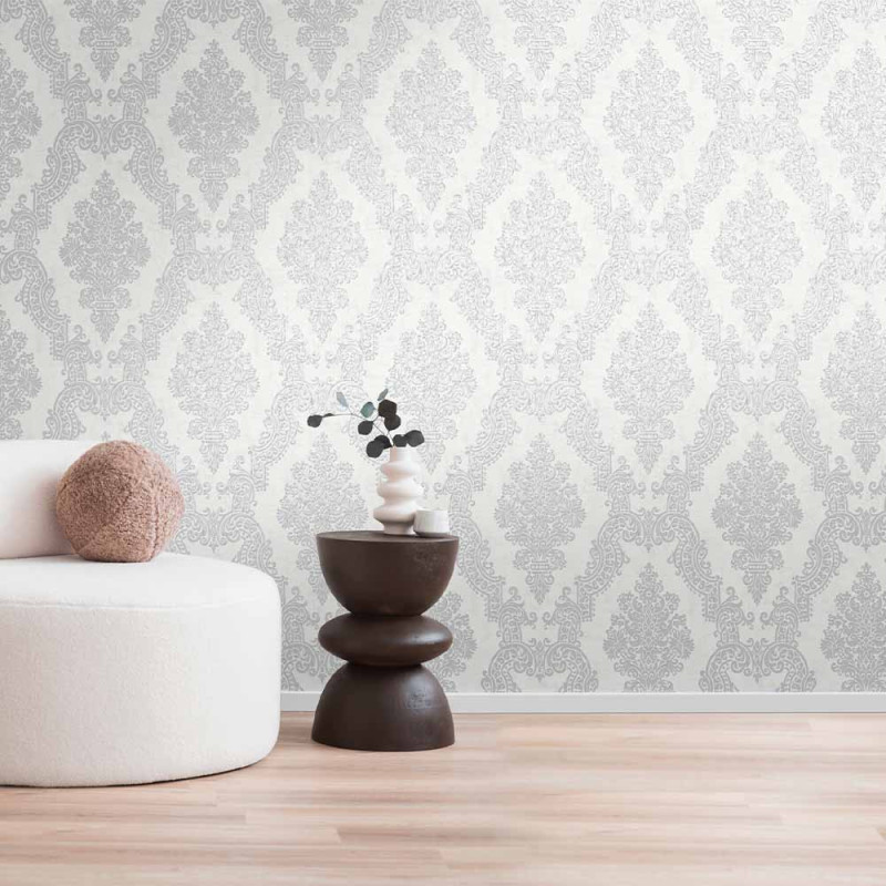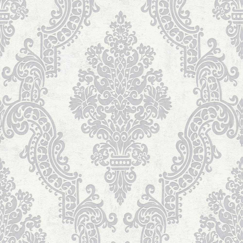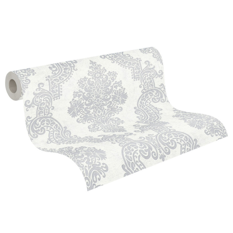 Papier peint intissé baroque blanc argenté AS Création
