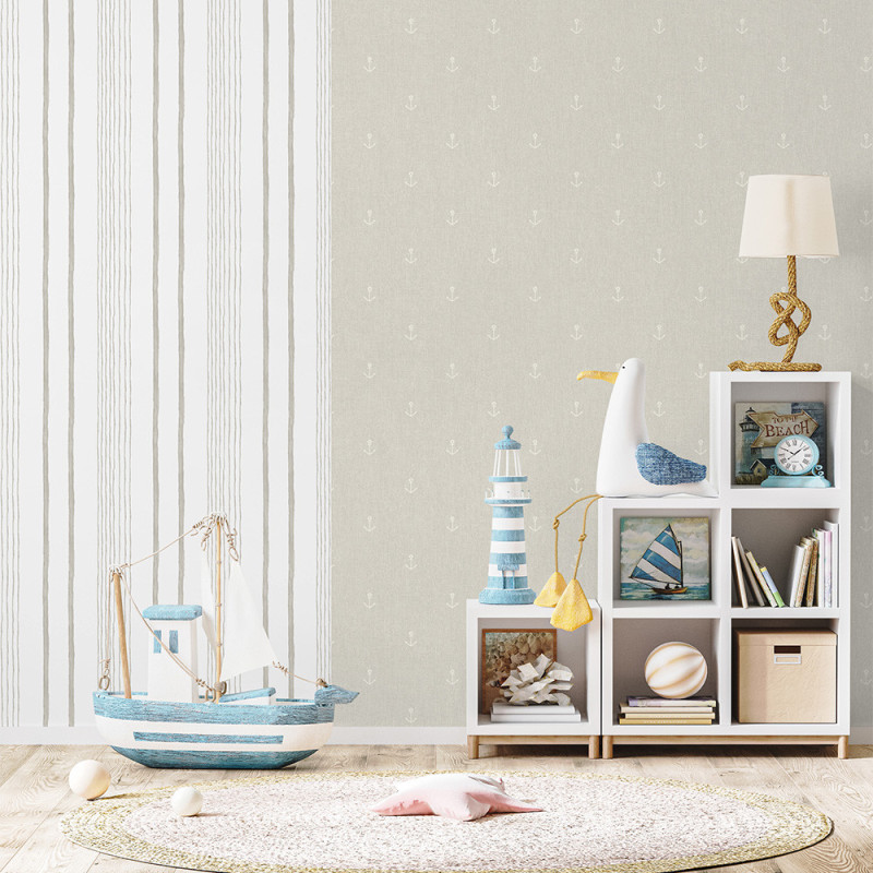 Apportez une ambiance chaleureuse et marine avec le papier peint intissé ancre de mer beige UGEPA. Son motif délicat d’ancres blanches sur fond beige fait référence à l’univers marin pour votre intérieur. Parfait pour une chambre d’enfant, une salle de jeux ou un espace cosy aux inspirations côtières.