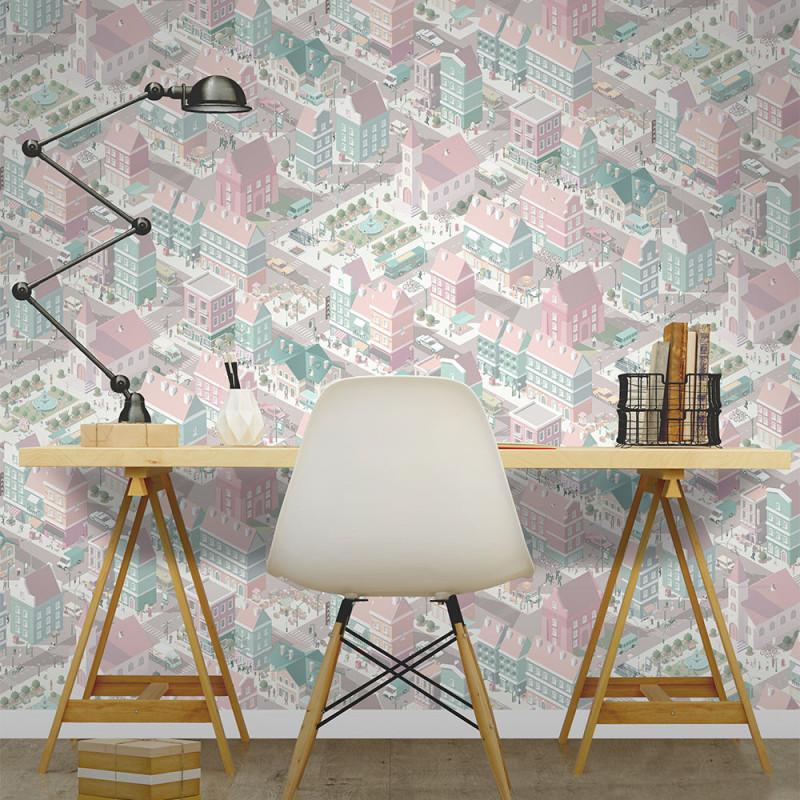 Apportez une touche urbaine à votre décoration avec le papier peint intissé ville Notting Hill multicolore pastel UGEPA....