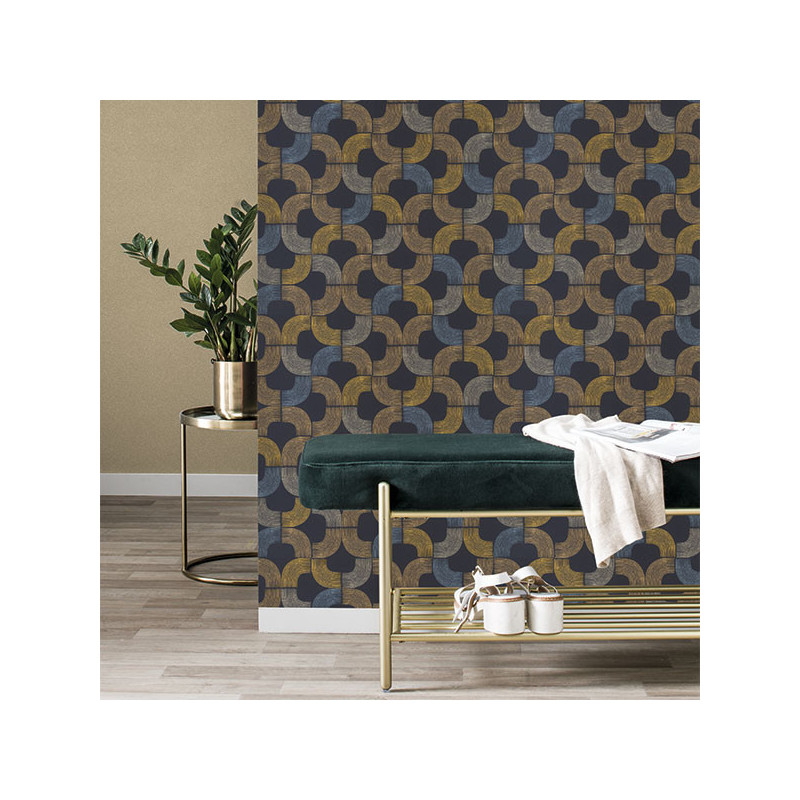 Papier peint intissé lessivable seventies bleu
