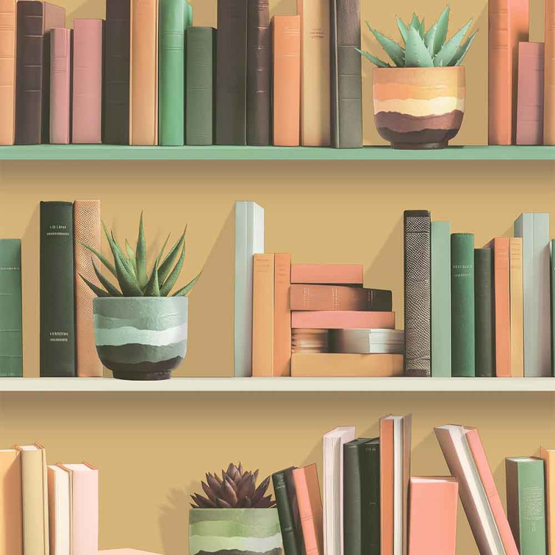 Papier peint intissé bibliothèque ocre UGEPA