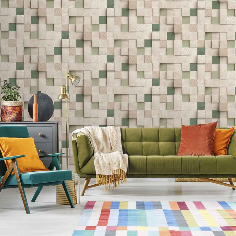 Le papier peint intissé petits cubes en 3D vert...