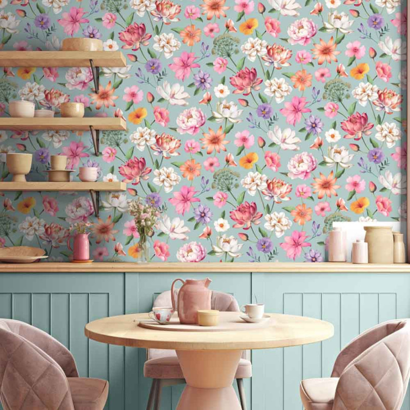 Papier peint intissé floral bleu UGEPA