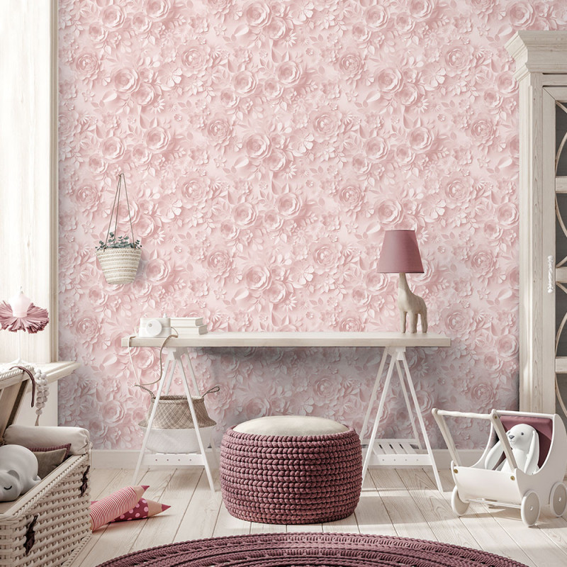 Papier peint intissé bouquet de rose rose pastel UGEPA