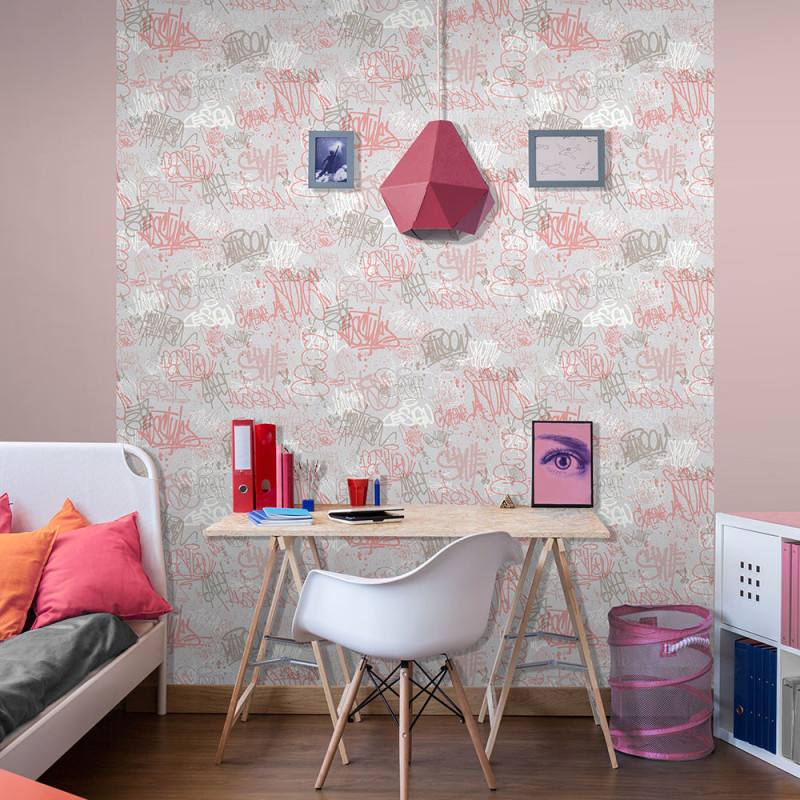Apportez une touche urbaine et colorée à la chambre de vos enfants avec le papier peint intissé Tagues Enfants rose UGEPA. Ses motifs graffiti ludiques dans des tons de rose créent une décoration originale et dynamique qui plaira aux plus jeunes ! Conçu en intissé, il offre une pose facile et rapide grâce à l’encollage du mur, sans difficulté. Lessivable, ce papier peint est pratique à entretenir et apporte une ambiance moderne et originale aux murs de la pièce.