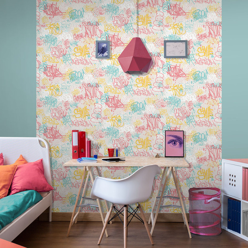 Papier peint intissé Tagues Enfants orange UGEPA
