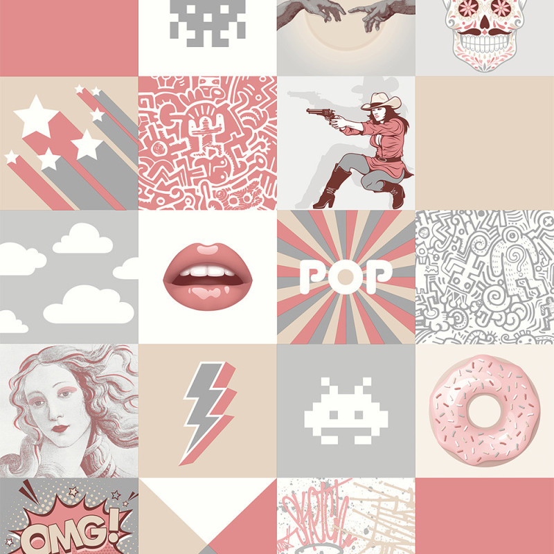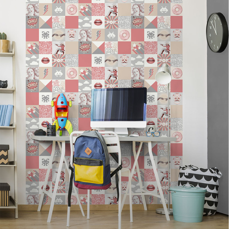 Papier peint intissé Carrelage POP rose UGEPA
