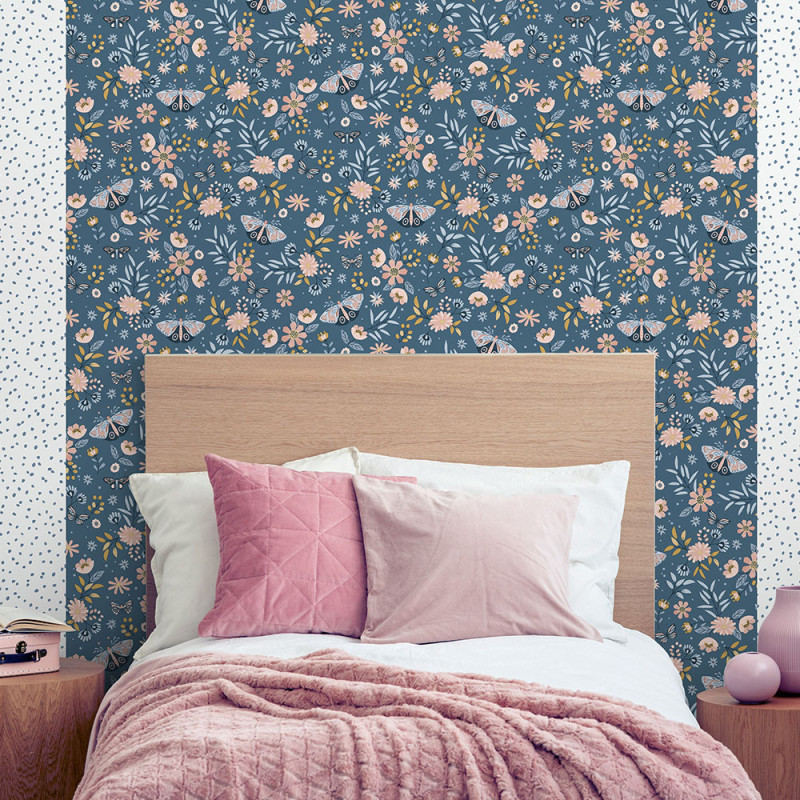 Papier peint intissé Papillon floral bleu UGEPA