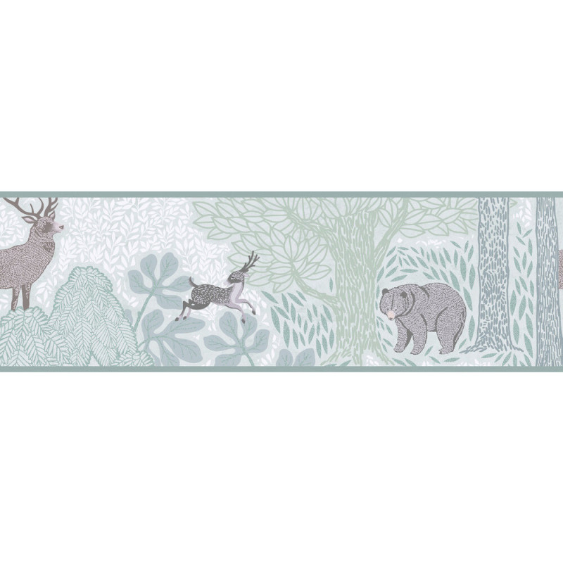 La frise murale Forêt Enchantée vert d’AS CREATION invite la nature chez vous avec un motif forestier apaisant et...