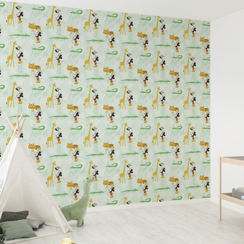 Faites entrer la magie de Disney dans la chambre de vos enfants avec le papier peint Mickey Doodle Zoo. Ce décor ludique met en scène Mickey Mouse et ses amis du zoo (girafe, tigre, crocodile et toucan) dans un style "dessin à la main" qui stimule l'imagination et la créativité. Une création signée Komar pour un univers joyeux et coloré.