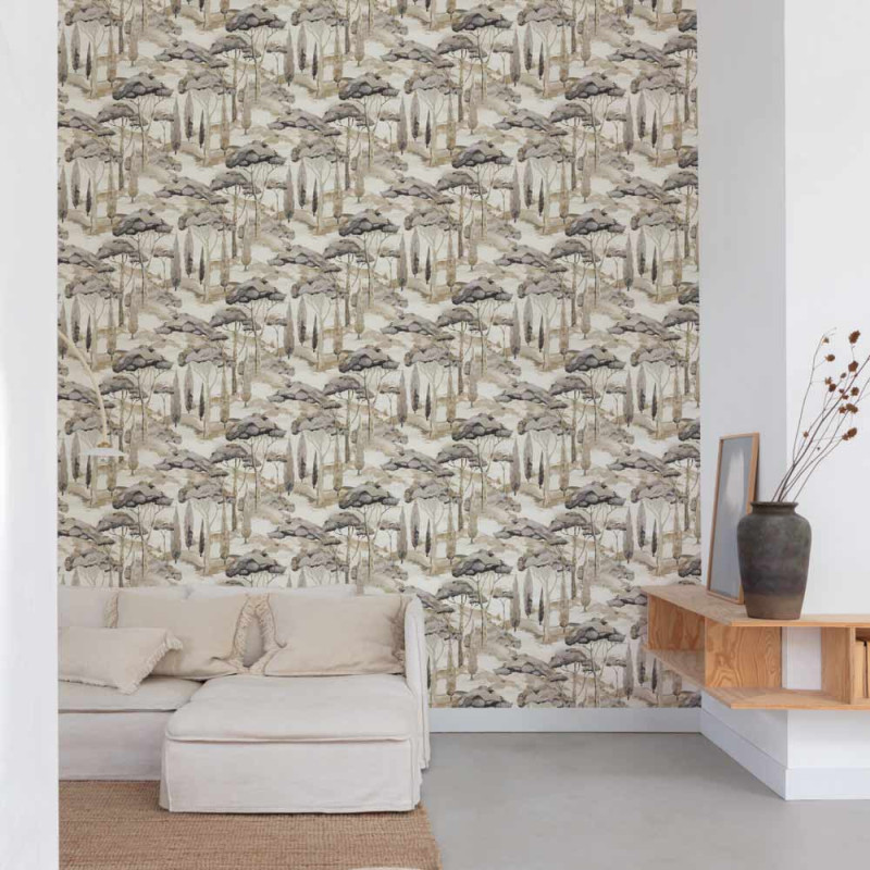 Papier peint intissé forêt d'arbres beige