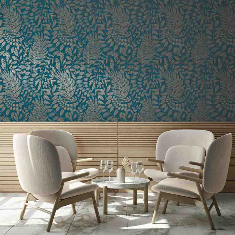 Papier peint intissé pré-encollé feuillage or bleu AS CREATION