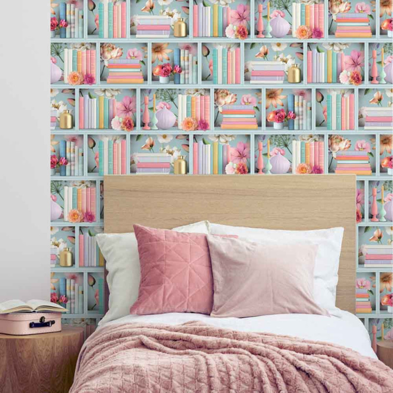 Papier peint intissé étagère florale bleu UGEPA
