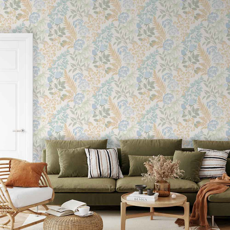 Apportez une ambiance douce et naturelle à votre intérieur avec le papier peint intissé végétal beige de la marque...