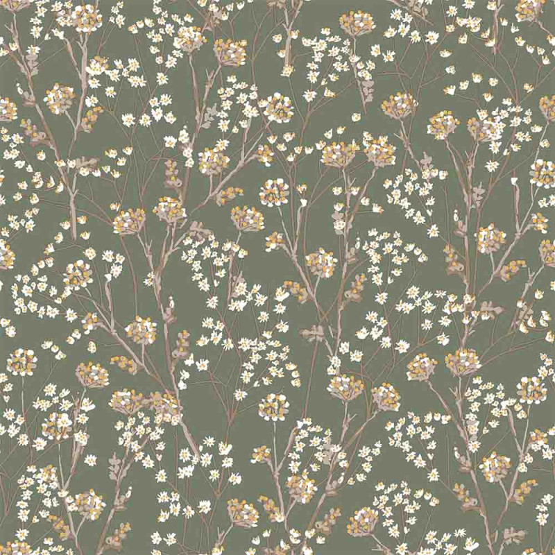 Le papier peint intissé tige florale sauvage vert...