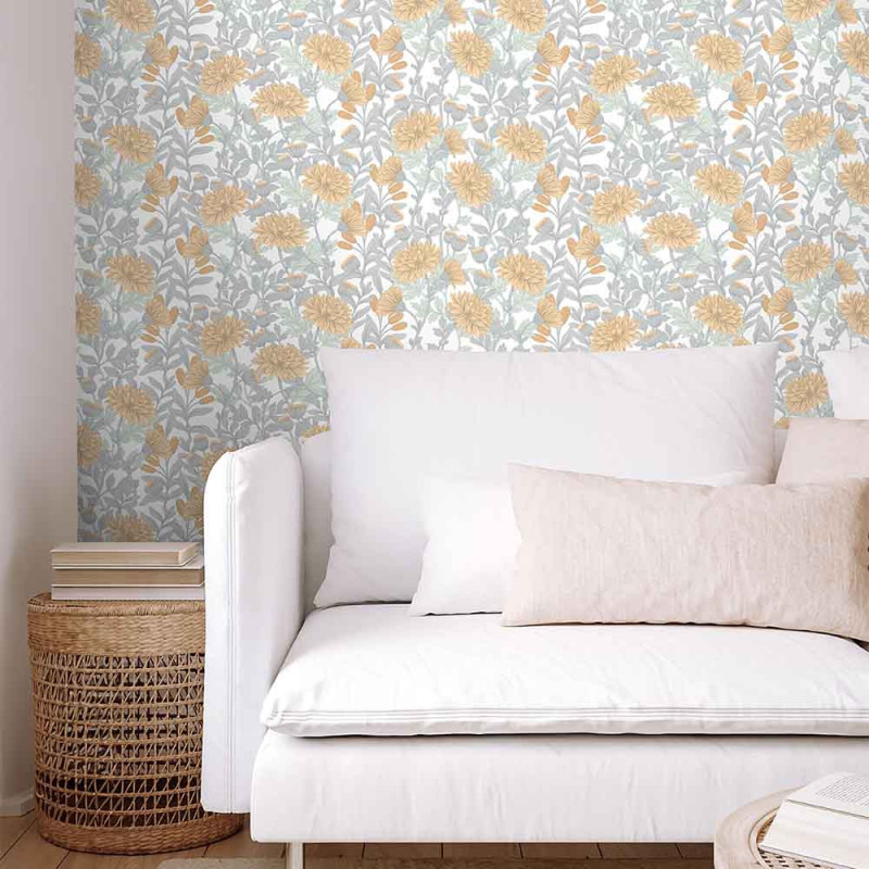 Papier peint intissé floral jaune UGEPA