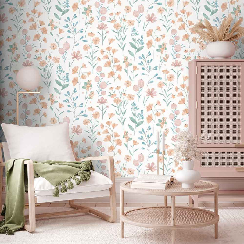 Papier peint intissé floral orange UGEPA