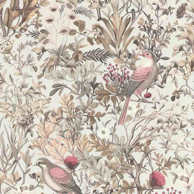 Papier peint intissé végétal oiseaux rose LUTECE