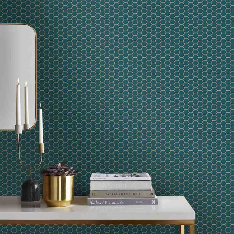 Apportez une touche moderne et élégante à votre intérieur avec ce papier peint intissé au motif géométrique d'hexagones verts. Son design chic et épuré s’intègre parfaitement dans un salon, une chambre ou toute pièce à la recherche d’un style contemporain et dynamique.