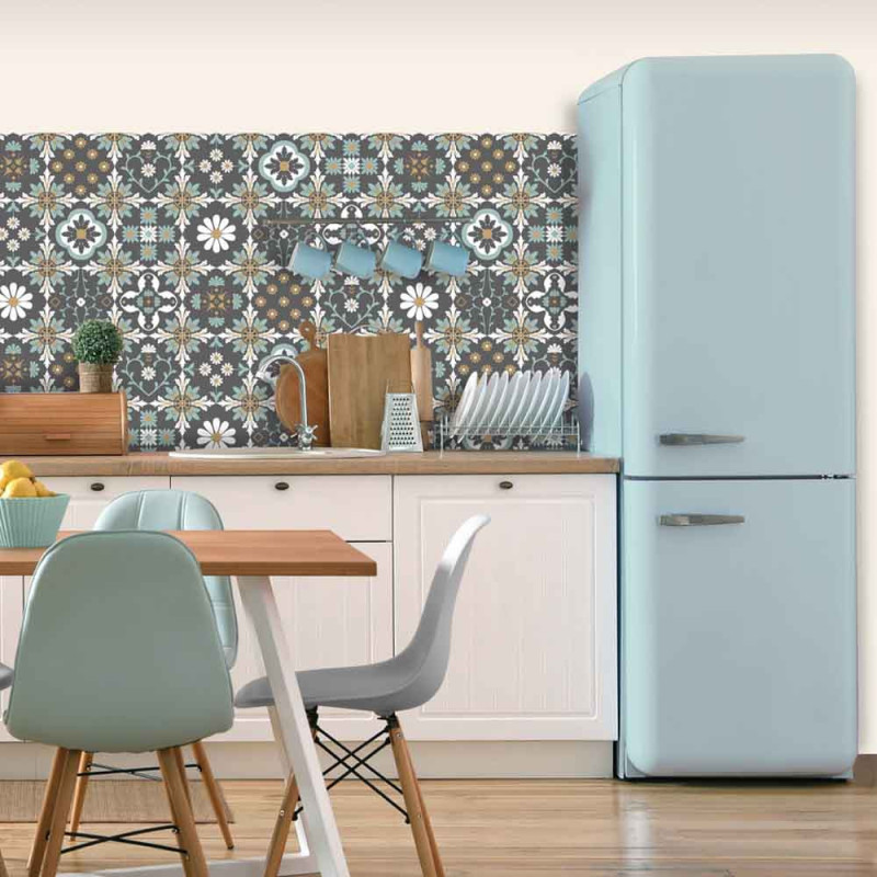 Le papier peint intissé carreaux de ciment vert...