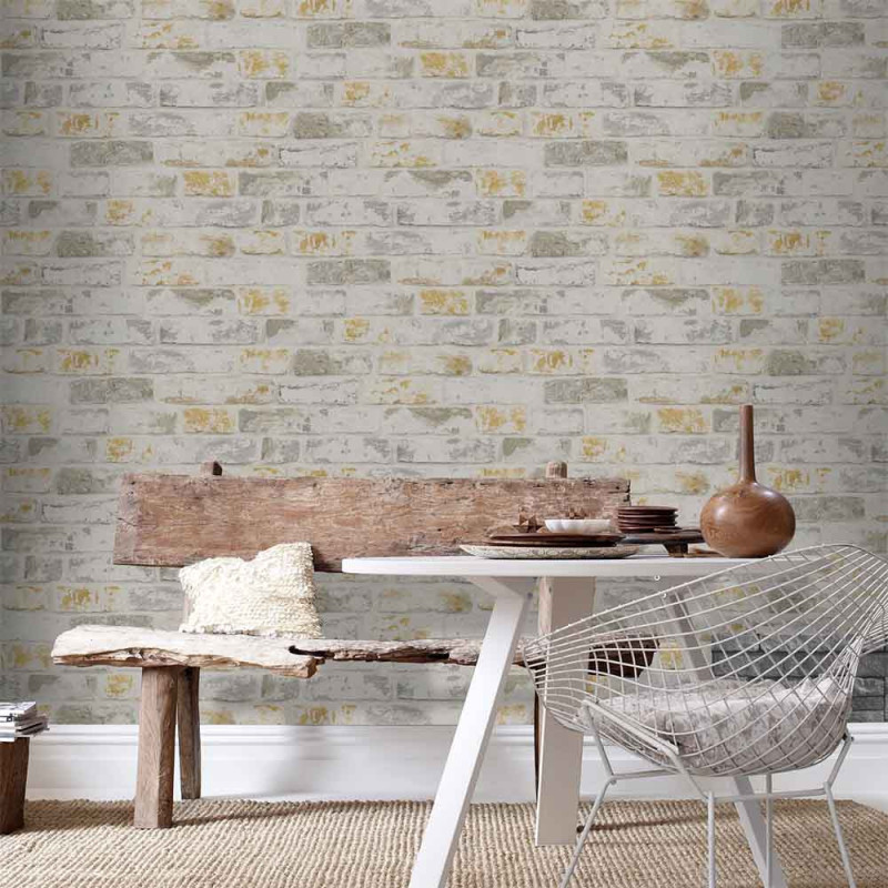 Apportez un look moderne à votre intérieur avec ce papier peint intissé imitation brique. Avec son design authentique, il recrée l’aspect d’un mur en briques tout en offrant une ambiance chaleureuse et lumineuse grâce à sa teinte jaune. Parfait pour apporter du caractère à votre salon, chambre ou toute autre pièce, il s’adapte facilement à différents styles de décoration.