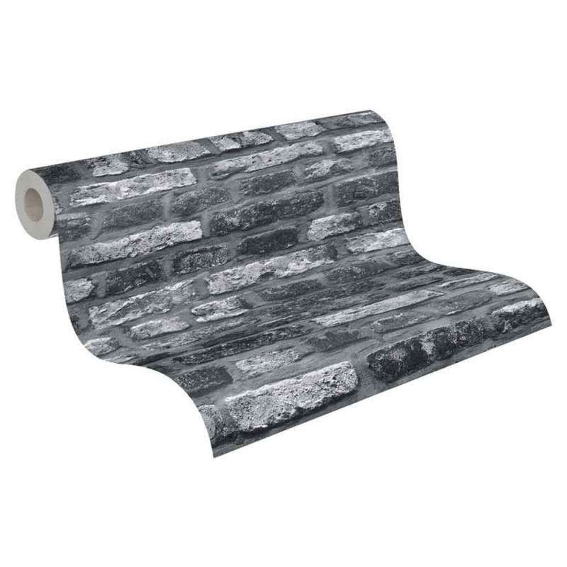 Ce papier peint intissé brique noir apporte un...