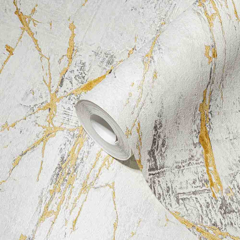 Papier peint intissé matière arts gris clair et or AS CREATION