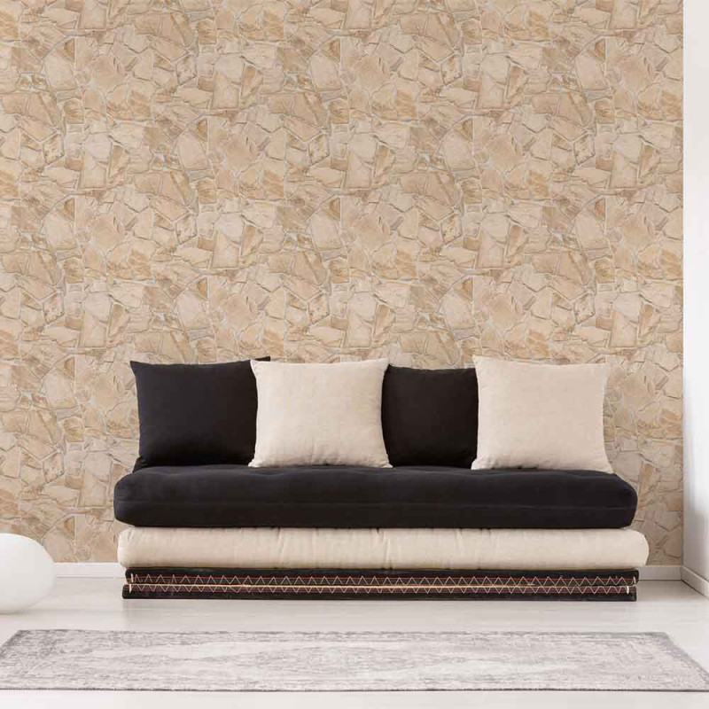 Papier peint intissé pierre parement beige