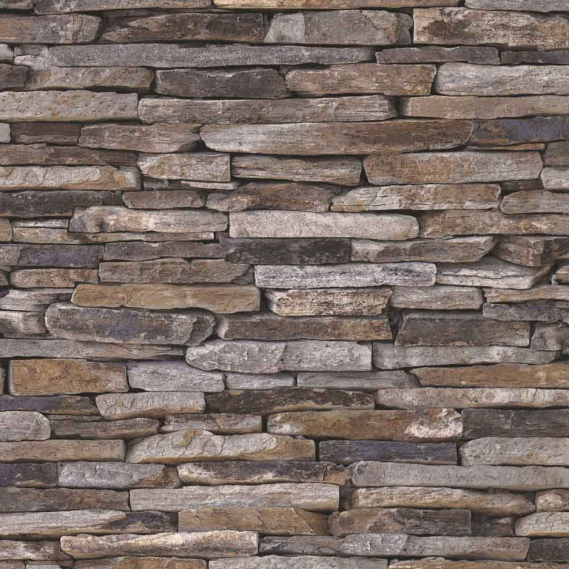 Papier peint intissé effet pierre plate naturel, idéal pour recréer l’aspect brut et authentique d’un mur en pierre dans...