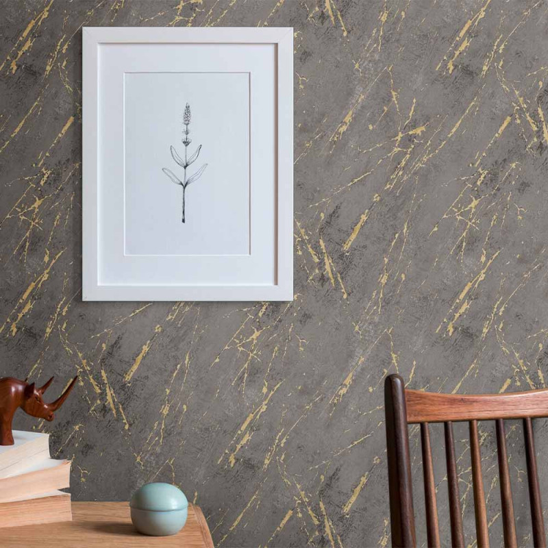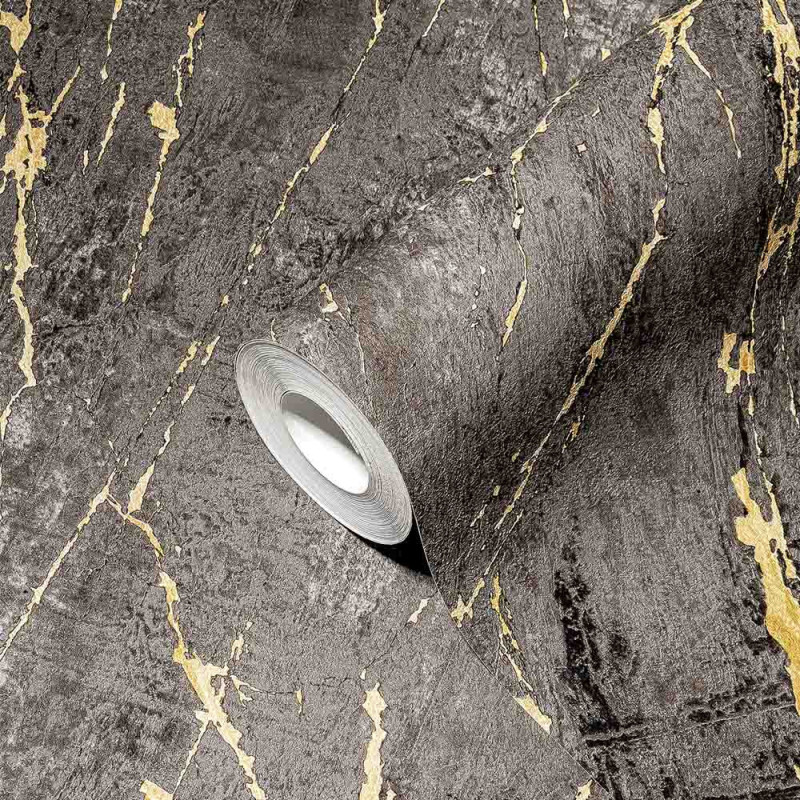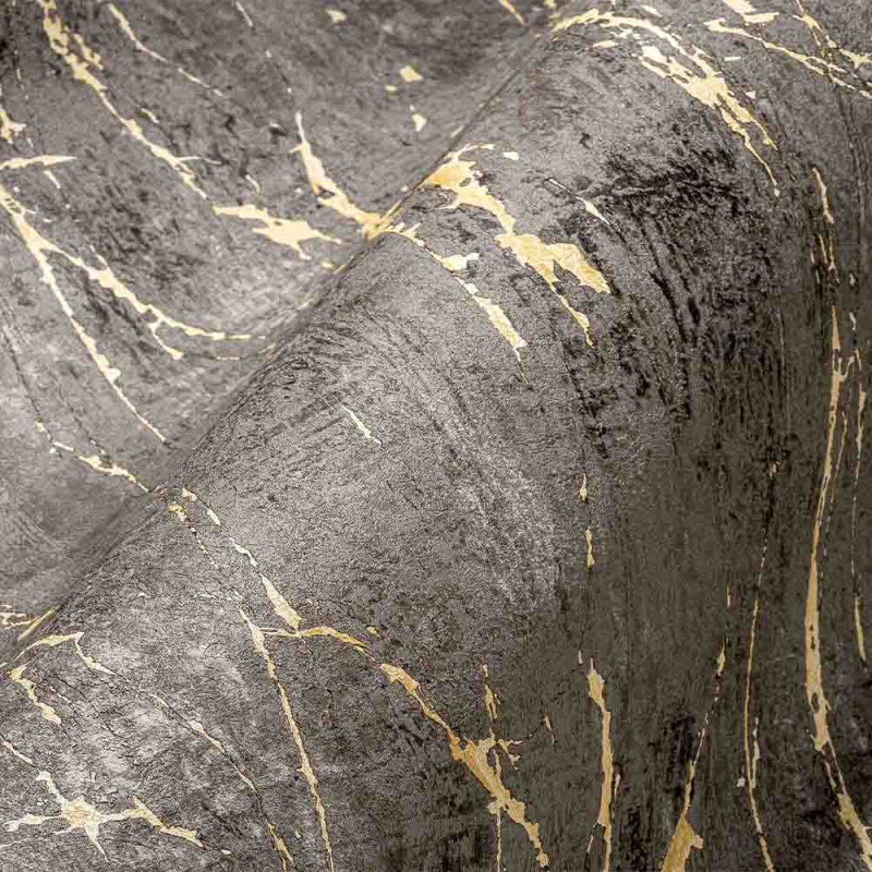 Papier peint intissé marbre art gris fonce or AS CREATION