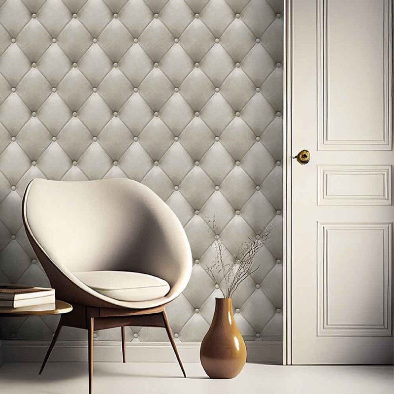Apportez une touche d’élégance classique et chaleureuse à votre intérieur avec ce papier peint intissé capiton beige signé UGEPA. Inspiré du revêtement matelassé style cuir, ce papier peint reproduit l’aspect d’un mur capitonné avec un effet trompe-l’œil ultra-réaliste.