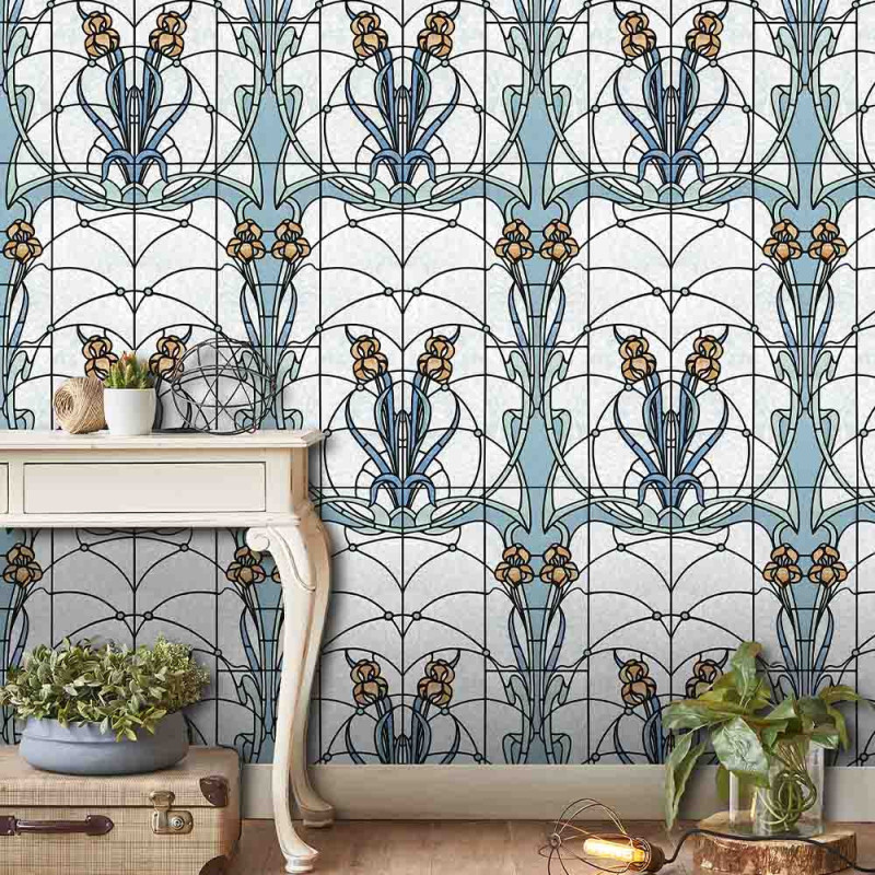 Papier peint intissé vitrail et fleur bleu UGEPA