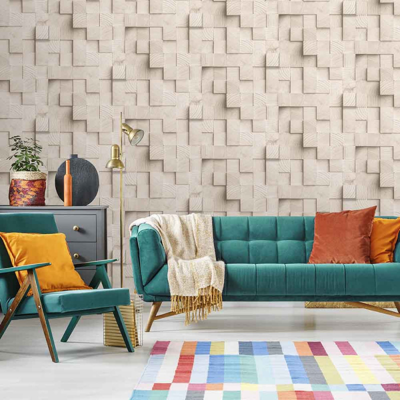 Le papier peint intissé cube en 3D beige UGEPA offre un rendu texturé et moderne grâce à son motif géométrique...