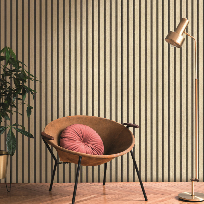 Papier peint intissé tasseaux de bois doré fond noir AS CREATION