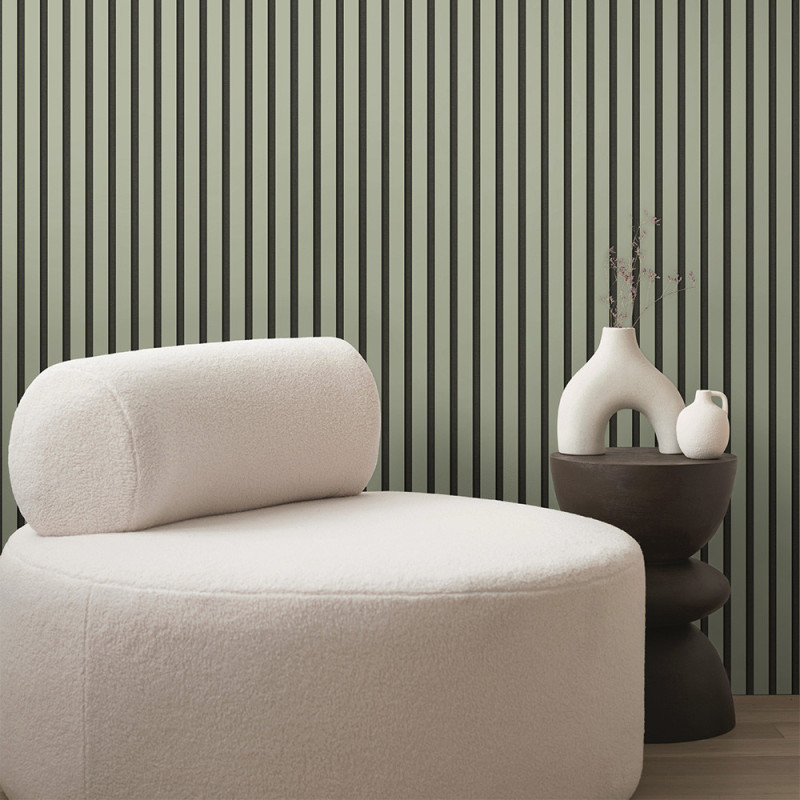 Offrez à votre intérieur une atmosphère naturelle et contemporaine avec le papier peint intissé tasseaux de bois vert sur fond noir AS Création. Très en vogue dans les tendances déco actuelles, ce revêtement mural marie un effet bois structuré à des nuances de vert profond, contrastant élégamment avec le fond noir pour un rendu à la fois apaisant et moderne. Facile à poser grâce à son raccord libre, il s’installe rapidement tout en étant lessivable, garantissant un entretien pratique. Idéal pour habiller un salon, une chambre ou un bureau, il apporte une touche végétale et graphique à votre décoration.