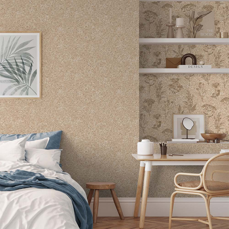 Invitez la nature et la simplicité dans votre intérieur avec le papier peint intissé imitation liège beige naturel...