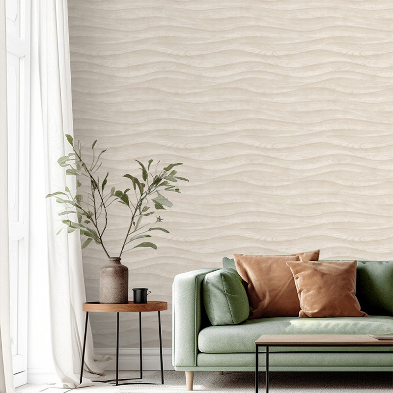 Papier peint intissé bois ondulé beige naturel UGEPA