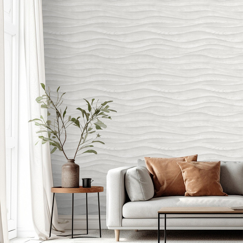 Papier peint intissé bois ondulé gris clair UGEPA