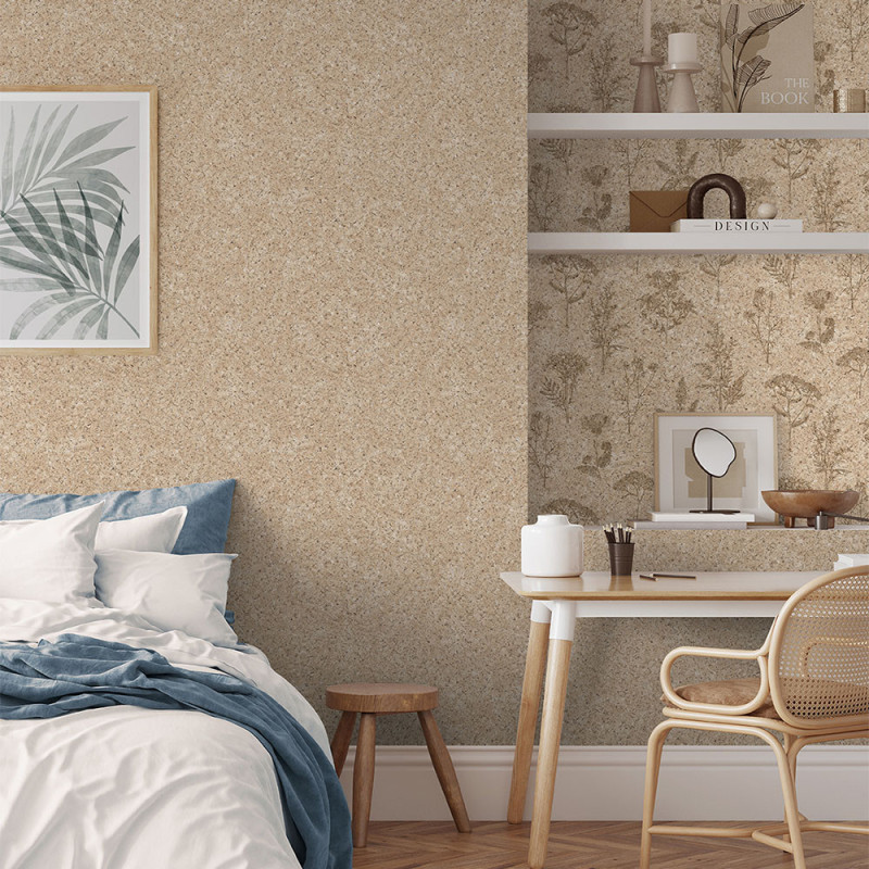 Papier peint intissé graminée façon liège beige naturel UGEPA